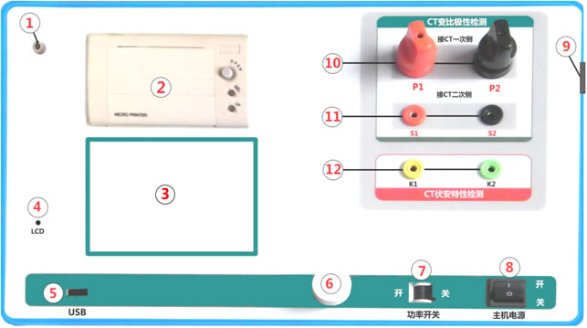 11 ——CT變比試驗時二次側(cè)接入端口        12 ——伏安特性試驗時電壓輸出端口