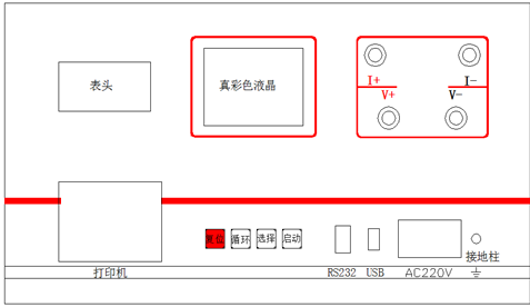 啟 動 鍵 輸出電流選擇完畢后按下此鍵,微機(jī)控制實(shí)現(xiàn)全部測試過程。